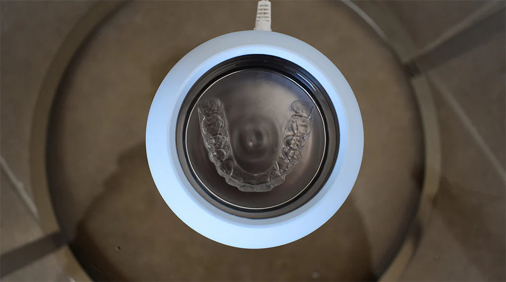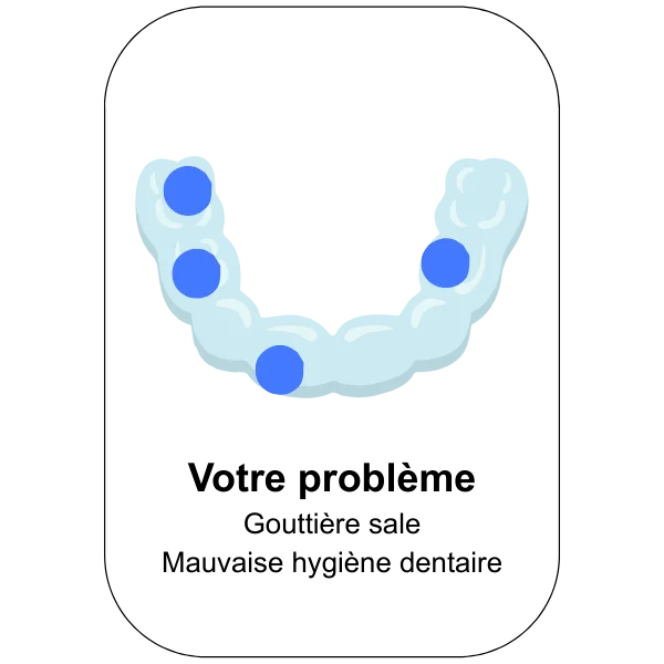Se contenter d’un comprimé nettoyant, c’est comme se brosser les dents avec du dentifrice mais sans brosse à dents. Les comprimés éliminent une partie des bactéries présentes sur votre gouttière, mais leurs agents chimiques ne pénètrent qu’en surface. Les bactéries incrustées et la plaque dentaire restent en profondeur, nuisant à votre santé bucco-dentaire et laissant votre gouttière trouble et sale.